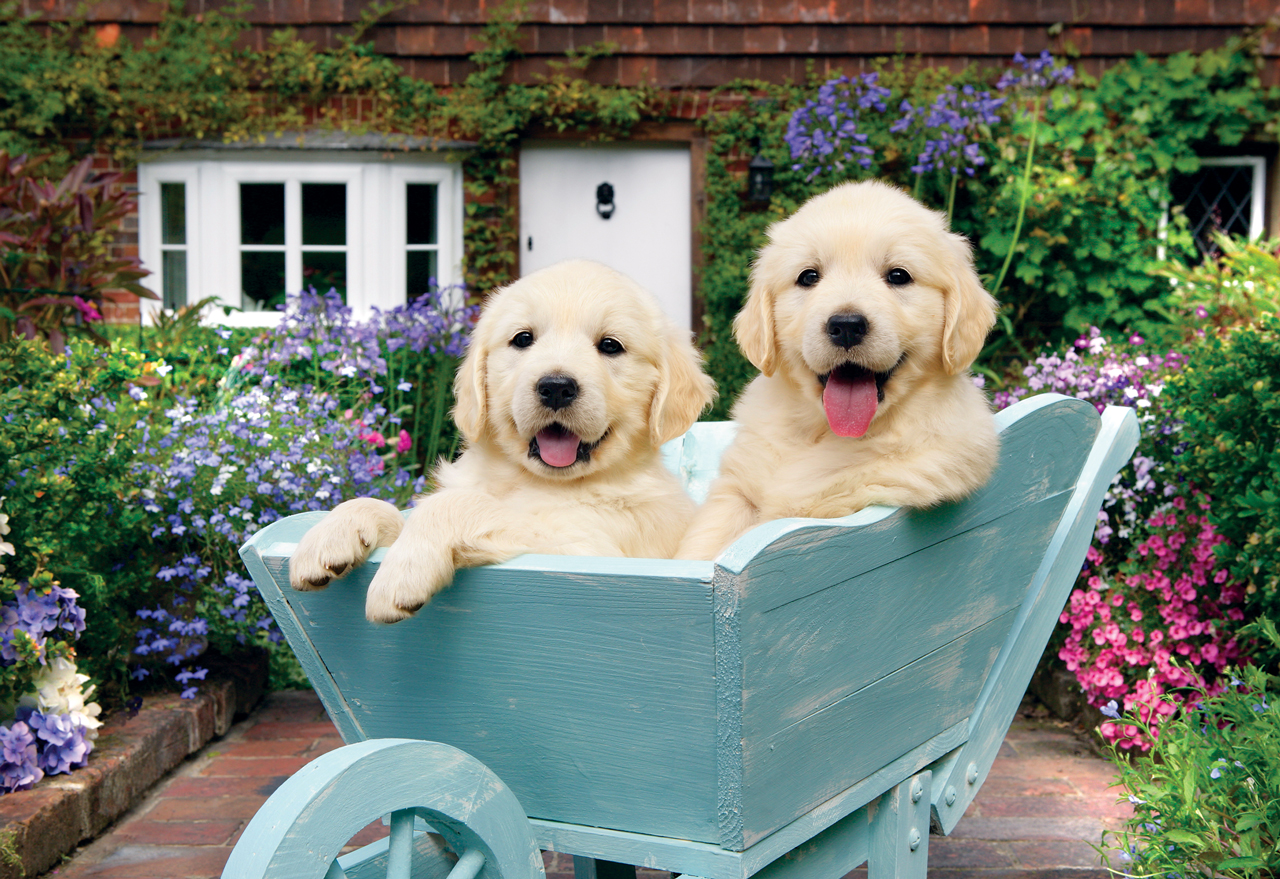 PUPPIES IN A WHEELBARROW