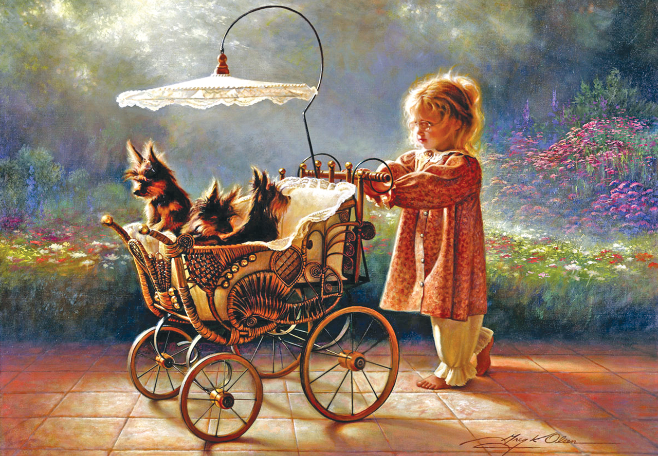 PUPPIES IN A WHEELBARROW